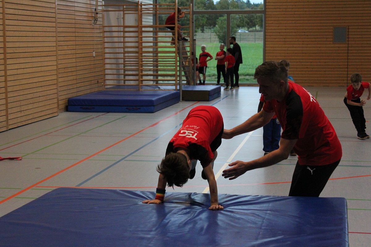 Bewegung, Begeisterung und Spaß stehen beim Jungsturnen an erster Stelle. Der Schwerpunkt liegt auf dem Geräteturnen: An Boden, Reck & Co. fördern wir spielerisch Kraft, Koordination und Beweglichkeit. Ergänzend fließen Kräftigungsübungen sowie Elemente aus der Leichtathletik ins Training ein.